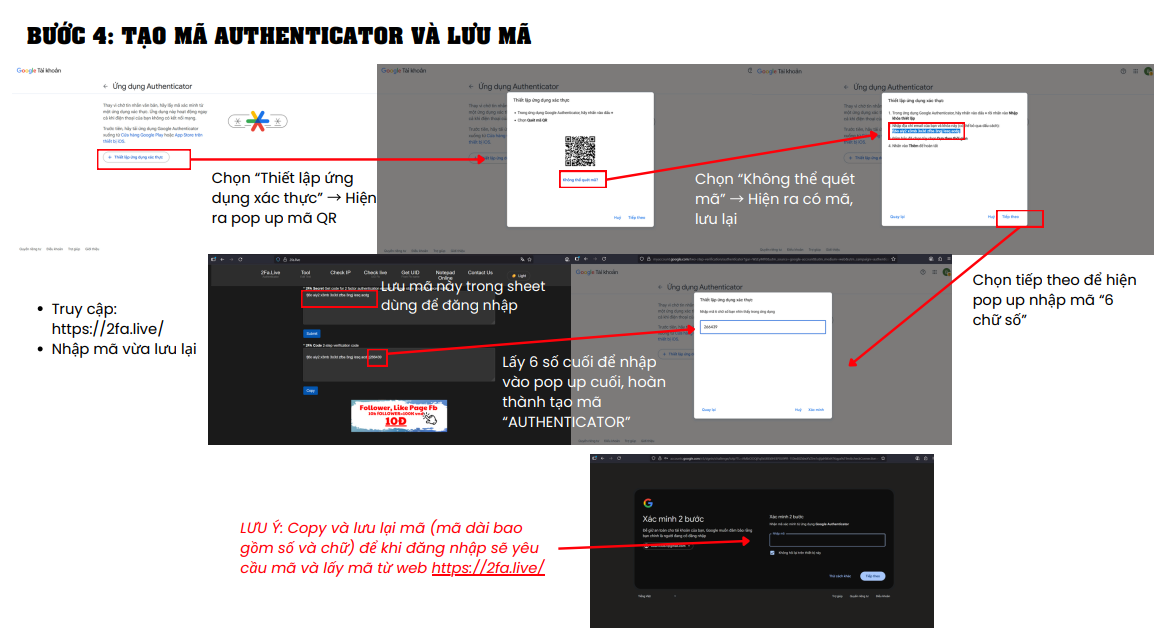 LƯU Ý: Copy và lưu lại mã (mã dài bao gồm số và chữ) để khi đăng nhập sẽ yêu cầu mã và lấy mã từ web https://khoappviet.com/cong-cu/ma-xac-thuc-2fa
